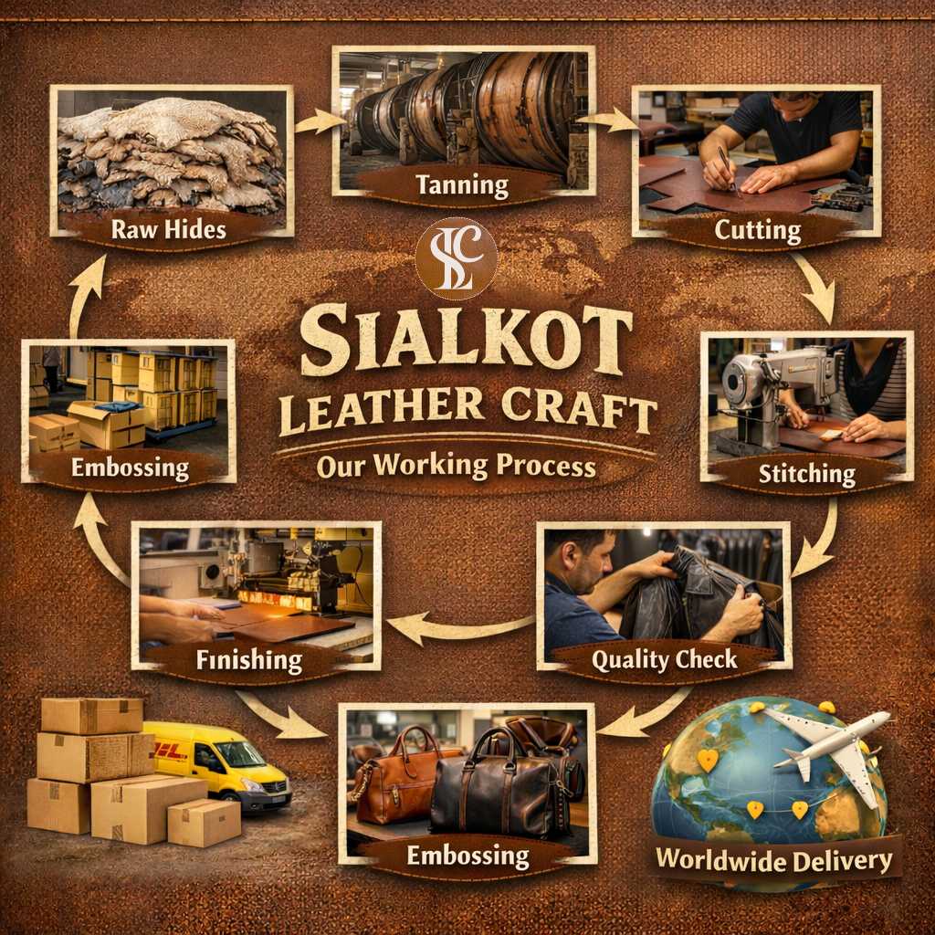 Welcome to Sialkot Leather Craft, where tradition, craftsmanship, and quality come together. Based in Sialkot, Pakistan, a city globally renowned for its leather expertise, we specialize in crafting premium leather products made to last.