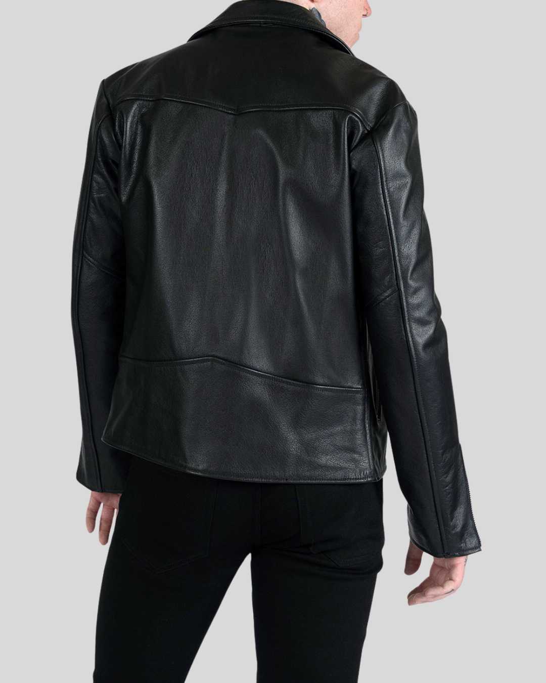 Functional zippered pockets provide secure storage while adding a contemporary edge to the design. A soft inner lining enhances comfort and makes the jacket ideal for layering during cooler seasons. Versatile and timeless, this leather jacket transitions effortlessly from casual daywear to elevated evening looks, making it a must have staple in any modern wardrobe.